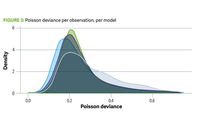 We have looked at the total Poisson deviance, but we can look at the full distribution